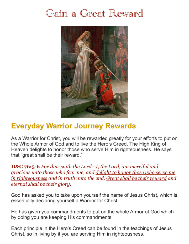 The Everyday Warrior Journey was created to help us become faithful warriors in God’s army. All youth leaders make a commitment to participate, with families and adult volunteers encouraged to engage in it as well. This Journey involves declaring yourself a Warrior for Christ, learning about each piece of the Armor of God and putting it on, and becoming aware of ways to live the Hero’s Creed and acting on them. This year’s theme is also incorporated as participants seek to honor the Divine Nobility in themselves and in every person. Successes are recorded as Victories by journaling each night and reporting to someone weekly, as well as shared with others to celebrate and to encourage one another.