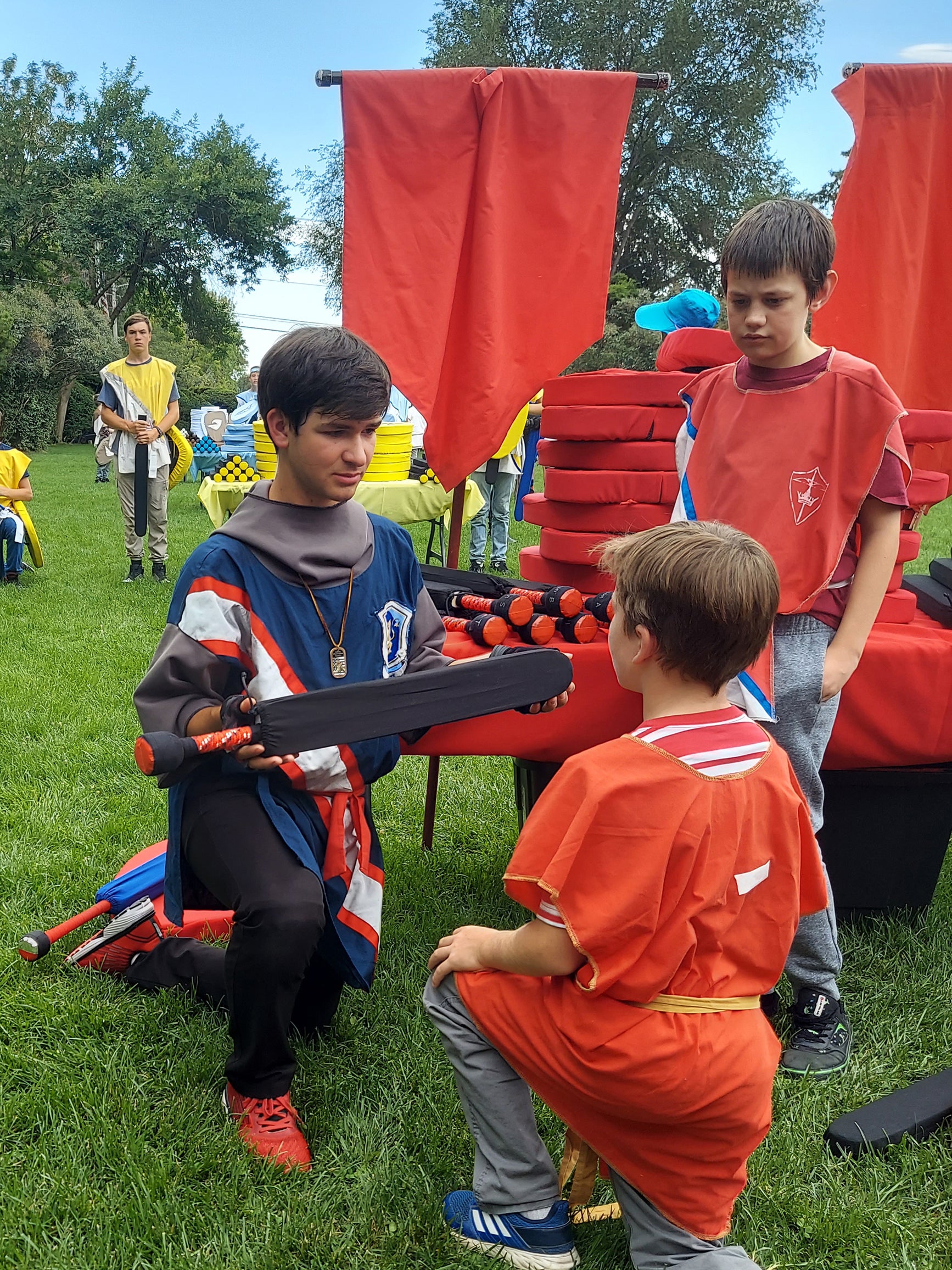 Summit is a two-day medieval simulation-style day camp for 8-12 year-olds. Led by the trained Youth Leaders of Hero Quest and staffed by Adult Volunteers, Summit allows children to become Knights and Handmaidens in the medieval nations of Christathel (for girls) and Terra Libre (for boys), where they learn to use their unique gifts, talents, and abilities to solve problems together as they face adversity from the opposition forces of the Shadowlands and Geldt. The event culminates in an epic Final Battle (with foam swords and arrows), followed by a ceremonial celebration. Summit participants do not need to be enrolled in our Crowned with Virtue or Mastering Knighthood clubs to participate. As our event is completely staffed by volunteers, we ask that each attendee provide at least one adult volunteer to help with the event, either in the important Final Battle as opposition (formerly called villains), or before or throughout the event as a staff volunteer. To find out more see our Volunteer page or our Join the Final Battle page.